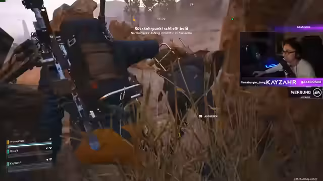 04:05:07In der letzten Phase der Raid-Runde in Arc Raiders diskutiert das Team über den weiteren Vorgehen. Sie überlegen, ob sie warten oder sich von einer Position wegbewegen, da sie mit Gegnern rechnen, die sie von oben angreifen könnten. Der Streamer erwähnt, dass er einen Buddy und Waffen wie eine Venator 3 hat und plant, mit dem Team aus der Runde auszubrechen. Dabei kommt es zu einer kleinen Diskussion über den Loot und die Frage, wer was aufnimmt, wobei der Streamer betont, es geht ihm um das Prinzip, nicht um den Loot.