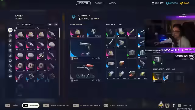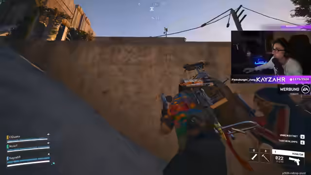 03:44:50Nach dem Battlefield-Spielen wechselt der Streamer zusammen mit seinem Mitspieler Fladi in das Spiel Arc Raiders, um in Trio-Lobbys zu spielen. Er plant, eine Venator-Waffe zu nutzen und hat bereits einen bestimmten Unterlauf im Visier. Der Streamer und sein Team befinden sich mitten in einer Raid-Situation, kämpfen gegen Gegner und planen den nächsten Schritt. Er versucht, seinen Mitspieler Fladi auf den Stand zu bringen und organisiert den Loot, wobei er über den Inhalt seines Inventars spricht und bestimmte Gegenstände wie Trigger-Nails und Schnelleinsatz erwähnt.