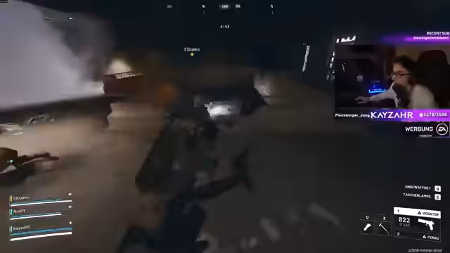 01:20:11Zu Beginn dieses Abschnitts wird die neue Map Berchtesgaden vorgestellt, die vom Streamer als schönster Ort Deutschlands gepriesen und als zukünftiger Schlachtfeldort erklärt wird. Mit heiterer Zuversicht wird der Sieg in dieser Runde angekündigt, da der Streamer dort immer im Urlaub ist und daher nicht verlieren kann. Die Diskussion über die aktuelle Battlefield-Meta-Waffe lenkt den Fokus auf den Controller, der seit zwei Monaten nicht mehr benutzt wurde und sich wie winzig anfühlte. Die Frage an den Chat, wer noch Battlefield spielt, zeigt, dass viele nach anfänglicher Begeisterung seltener spielen. Bei 4892 wird die neue Map als nice, aber für Battlefield-OGs nicht groß genug befunden. Der Start in eine Eroberungsrunde wird mit der Beschwörung eines Panzers eingeleitet und die Karte selbst wird als bayerisches Idyll beschrieben. Es folgt eine Kampfszene, in der der Streamer mit einem Panzer Schaden an einem gegnerischen Panzer anrichtet. Die Frage nach der Größe der Map wird erneut aufgegriffen und positiv bewertet. Eine Spawnszene zeigt den Kampf des Streamers, der als Supporter und Reparateur agiert, während sein Team nicht zur Hilfe kommt und der Panzer verloren geht. Das Gameplay wird als "kino" und die Gegner als "Battlefield-Community-Macher" beschrieben, die nicht an ihren eigenen Arsch denken. Es folgen weitere Tode durch Heli und Sniper, was den chaotischen und intensiven Spielverlauf der Runde zeigt. Der Wunsch, den Little Bird zu fliegen, bleibt unerfüllt.
