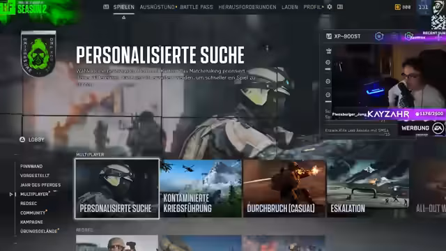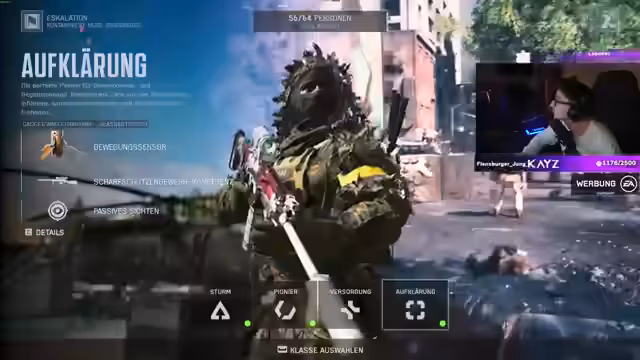 02:21:19Der Streamer zeigt sich beeindruckt von der Grafik von Battlefield und erläutert dem Chat, wie man Headshots erzielt, da normale Treffer nicht zum Kill führen. Er präsentiert den Battle Pass der neuen Season, der unter anderem neue Waffen wie einen Granatwerfer und verschiedene Skins enthält. Dabei ist er Gründer, aber auf niedrigem Level. Die Map wird als Berchtesgaden-Land identifiziert, und er wechselt zur Verteidiger-Team, um seine neu ausgerüstete Waffe einzusetzen.