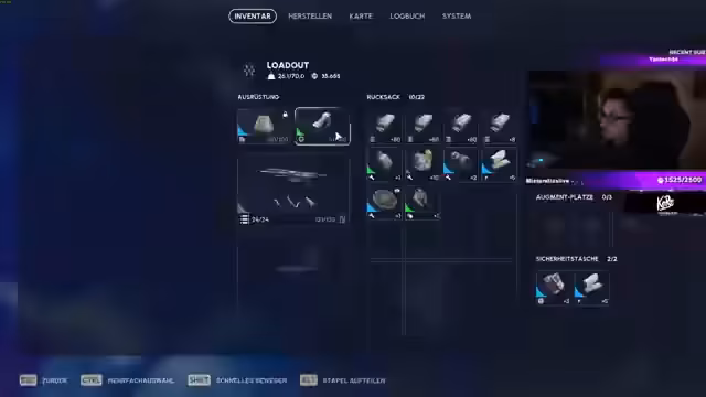 01:38:55Der Streamer beschäftigt sich intensiv mit dem Management seiner Ressourcen und Craft-Materialien. Er findet es unangemessen, wie viel er für Heilmittel und andere Gegenstände ausgeben muss und bemängelt, dass er fast keine Herstellungsmaterialien mehr hat. Er beginnt, alles, was er nicht benötigt, umzuwandeln, craftet Abzugsgranaten und stellt fest, dass er nur wenige Schildauflader besitzt. Sein Hauptziel ist es, Akkus und Granaten zu besorgen, um sich für den bevorstehenden Kampf zu rüsten.