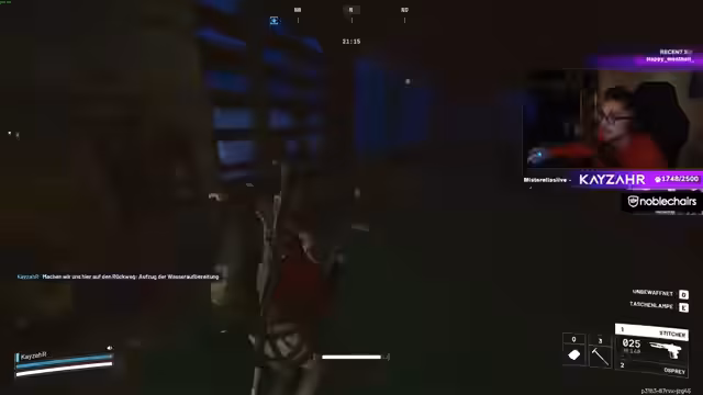 03:05:35Es wird über Probleme mit der Stitcher-Waffe und der Spielbalance bei der Pharaoh-Waffe diskutiert. Die Debatte zwischen Controller- und Maus-Spielern wird angeführt. Eine unglückliche Spawn-Situation ('Arschspawn') und das Verhalten von NPCs werden kritisiert. Der Stream endet mit einer 'Friendly Kill'-Situation und weiteren Interaktionen, bei denen der Streamer seine Geduld verliert.