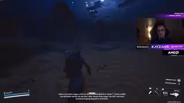 00:12:11Im Fokus des Streams stehen PvP-Kämpfe in Arc Raiders. Der Streamer beschreibt seine Erfahrungen im Solo-Modus, wo er seine Kettel 4 als sehr effektiv empfindet, besonders da man beim Tod nicht verliert, was den Spielspaß erhöht. Er gerät in einen Kampf, in dem er einen Gegner tötet und dessen frischen Loot für andere Spieler verfügbar macht. Er unterhält sich kurz mit einem anderen Spieler, der ihn an einem Ort überrascht, und freundet sich scheinbar an, indem er ihm den Zugriff auf die Beute gestattet.