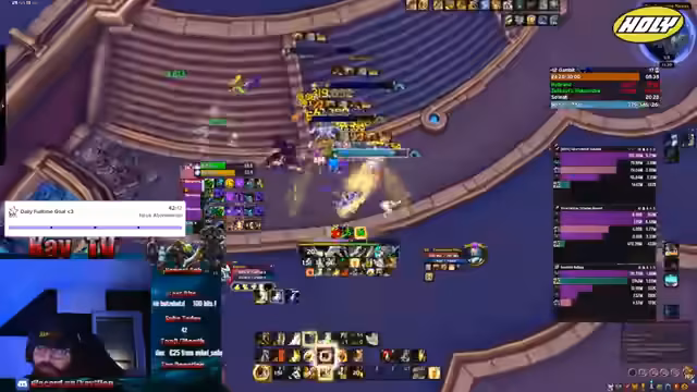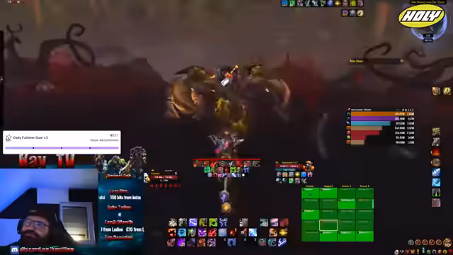 00:40:47Die Raid-Gruppe absolviert die Bosse schnell, was den Hype Train im Chat ankurbelt. Der Streamer nutzt die Pausen zwischen den Bosskämpfen für Gespräche. Er informiert über den bevorstehenden Ende des Remix-Content und gibt einen Hinweis auf einen neuen, noch angekündigten WoW-Film, von dem er sich wenig hält. Die Community reagiert aktiv mit Spenden und Abonnements.