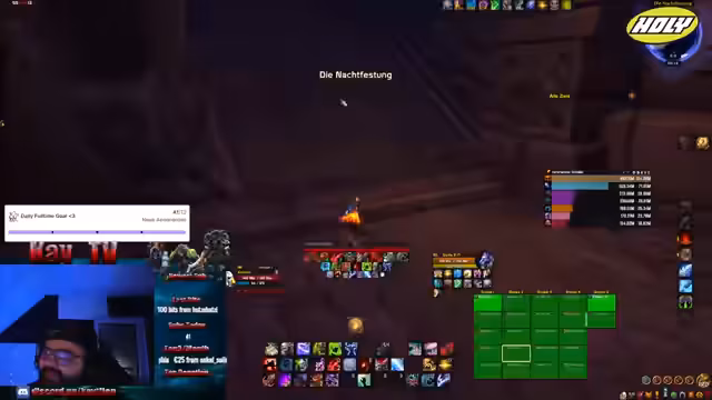 01:52:02Der Stream beginnt mit der Erwähnung eines technischen Problems, bei dem eine Person fälschlicherweise als böser User eingestellt war. Dies soll geprüft und umgestellt werden. Im Anschluss wird eine Diskussion über das Lernen aus Fehlern und deren Verzeihbarkeit geführt. Weiterhin gibt es einen kurzen Abriss über den geplanten Spielverlauf im Remix-Raid, das Erstellen von Wölkies und das Tanken auf einem Retribution Paladin.