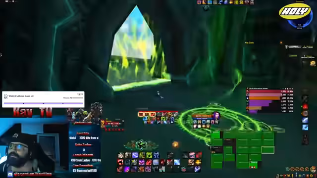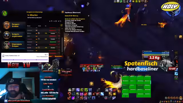 03:23:23Der Stream beginnt mit dem Start des Raids auf dem Server 'Retail'. Es werden Probleme mit den Stream-Elementen-Bots erwähnt, die bestimmte Befehle blockieren, während das Angeln weiterhin möglich ist. Nach den Raids plant die Streamerin, bei 40er-Schlüsseln zu helfen, um Spielern das Achievement für das Transmog-Set und den Titel zu ermöglichen, wobei sie bis zu drei Spieler gleichzeitig tragen kann. Die Blackweeks werden beworben, die bis zu 30% Rabatt auf bestimmte Produkte bieten.