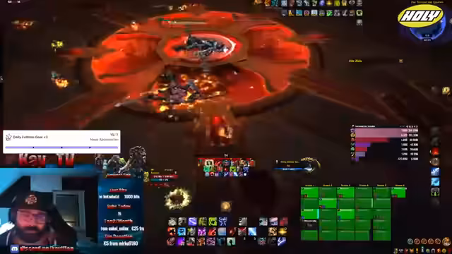 01:50:55Im Stream wird die Aufteilung der Raids besprochen. Zuerst findet ein Heroic-Raid (HC) statt, da der sich anschließende Mythic-Raid eine geringere Teilnehmerzahl erlaubt. Es werden gezielt Spieler, wie Arilon und Kalia, zum HC-Raid eingeladen, um ihnen die Chance zu geben, das Zauberschwinge Mount zu erhalten. Nach dem HC soll der Raid schnell in den Mythic-Raid umgestellt werden, um die gesamte Lobby durchzuspielen und Zeit zu sparen.