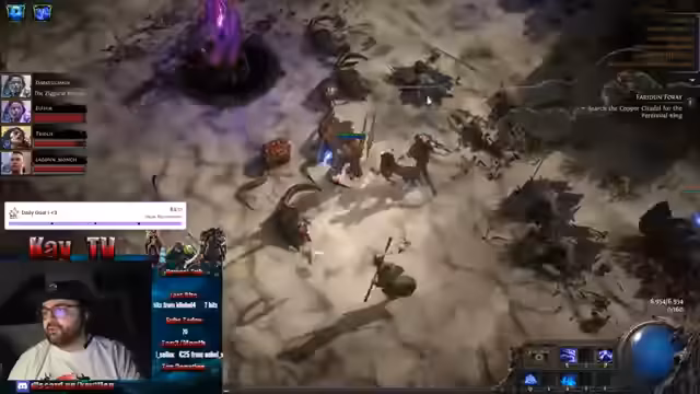 00:07:33Die Gruppe durchläuft verschiedene Maps, sammelt Beute und verkauft diese für Ingame-Währung (Divine). Währenddessen gibt es wiederholte technische Probleme; Spieler finden nicht immer den Weg in die Gruppenmap, was auf einen Bug hindeutet. Der Streamer nimmt einige Rückschläge auf humorvolle Weise, betont aber, dass der Spaß am Zocken mit der Community im Vordergrund steht und er auch mit seinem Gesundheitszustum zu kämpfen hat.