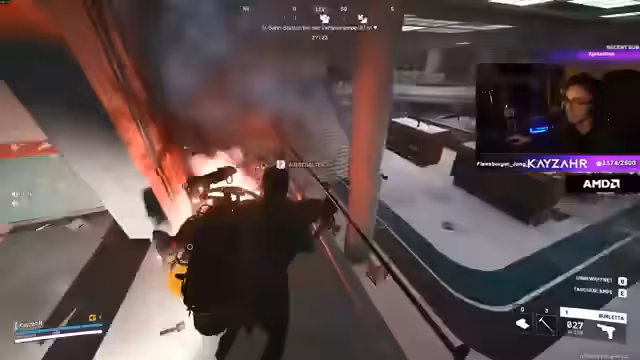 03:29:38Das Gameplay ist taktisch und intensiv. Der Streamer kommuniziert intensiv mit seinem Team, um Gegner zu verfolgen und zu eliminieren. Es gibt mehrere klare Handlungen, wie das 'Pushen' von Gegnern, das Brechen von Türen und das Koordinieren von Angriffen. Der Streamer beschreibt die Situationen sehr dynamisch, wie z.B. 'der ganze Map schießt auf mich'. Er und sein Team scheinen ein klares Ziel zu verfolgen, Gegner zu 'knocken' und zu 'finishen'.