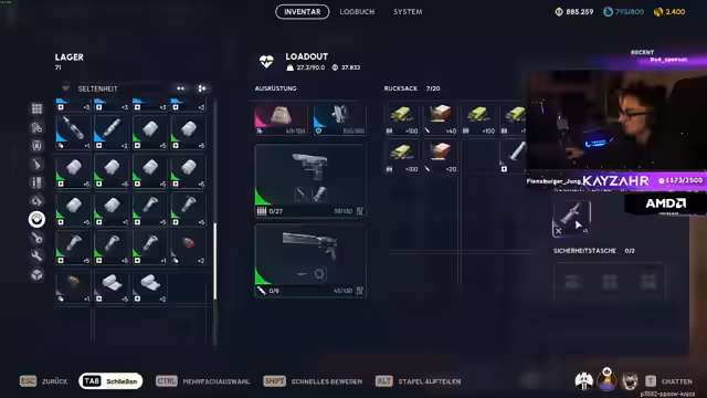 02:31:18Die Stream-Aufzeichnung zeigt chaotische Szenen in der Lobby, in denen die Spieler agieren. Der Streamer versucht, ohne großen Aufwand sein Ziel zu erreichen. Es werden Wertgegenstände wie Stahlfedern gesammelt. Die Runde endet mit einer deutlichen Anzahl an Eliminierungen und der Erkenntnis, dass die wirtschaftliche Balance des Spiels zu wünschen übrig lässt.