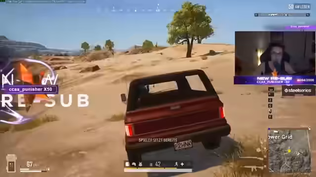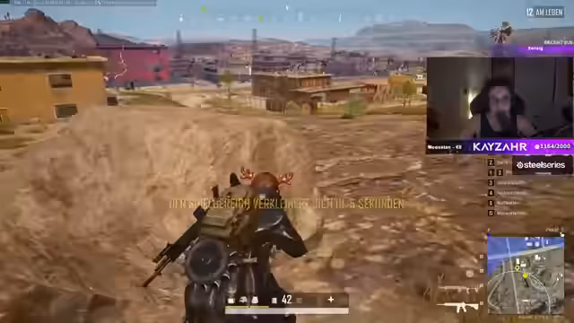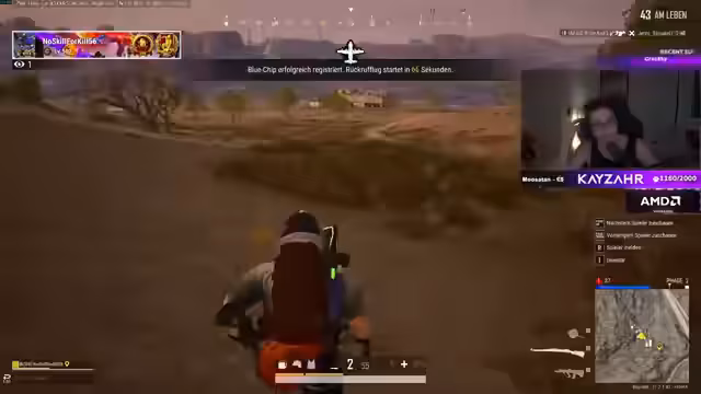 03:42:11Ein Gegner wird in der Nähe vermutet und es wird versucht, diesen aufzuspüren. Es wird festgestellt, dass ein zuvor anvisierter Ort bereits geplündert wurde und der Notfall-Pickup liegen gelassen wurde. Es wird sich gefragt, ob sich ein Gegner in der Nähe versteckt hält. Auf die Frage, wie man Frauen versteht, wird geantwortet, dass man keine Ahnung von Frauen hat, aber dafür Ahnung vom Zweiten Weltkrieg. Es wird der Chat um Hilfe gebeten, da sich auch Frauen im Chat befinden. Es wird ein Pickup Truck genommen und das Radio eingeschaltet. Es wird gefragt, ob eine bestimmte Person im Chat die Freundin von jemandem ist. Es wird über die Kennenlernphase gesprochen und gefragt, ob sich Frauen im Chat befinden. Es wird versucht, einen Spieler mit einer Waffe aus dem Fahrzeug heraus zu töten, um eine Errungenschaft zu erzielen. Es wird sich über die Geiermentalität anderer Spieler beschwert, die auf einen Air-Drop warten. Es wird sich gefragt, warum die ganze Map auf einen schießt und woher die Angriffe kommen.