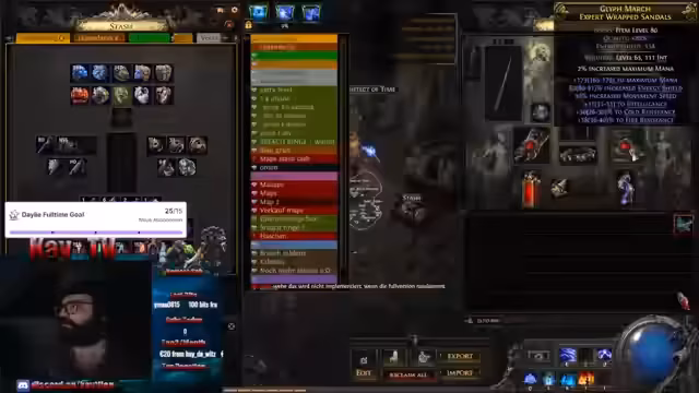 00:00:29Der Stream beginnt mit der Einleitung des Streamers, der den Start ankündigt und direkt in das Gameplay von Path of Exility (PoE) einsteigt. Er beschäftigt sich mit dem Aufbau seines Inventars und der Identifizierung neuer Items. Dabei diskutiert er über den Wert verschiedener Ausrüstungsgegenstände, wie zum Beispiel einen Ring und Brustpanzer, und stellt fest, dass deren Marktwert variabel und oft überraschend niedrig ist. Der Fokus liegt auf der fortlaufenden Suche nach wertvollen Gegenständen und dem Nutzen von Gambling-Systemen im Spiel.