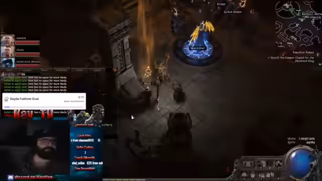 02:13:25Zuerst wird ein Expedition-Item als wertlos abgetan und zum Wegwerfen empfohlen. Danach konzentriert sich der Streamer auf das Erstellen von Maps, um diese in Divine umzuwandeln. Der Fokus liegt auf der Quantität, um viel Loot zu farmen. Ein Kilo Wein wird als gutes Ergebnis gelobt und ein Unbekannter möchte Exalted tauschen. Ein Twitch-Timeout wegen anstößiger Sprache wird thematisiert und die Gemeinschaft mit einem Durchschnittsalter von 30+ verteidigt.