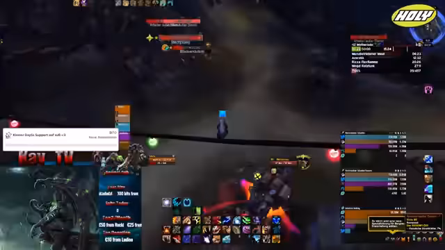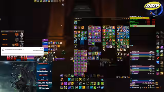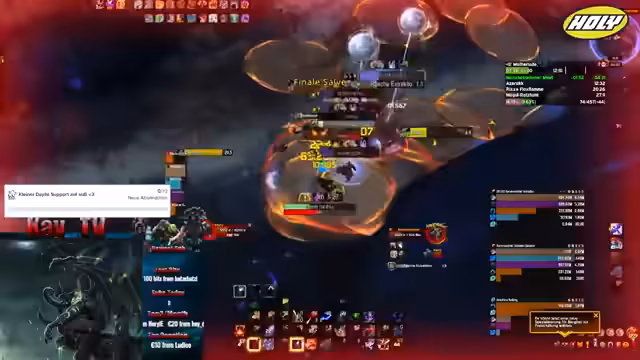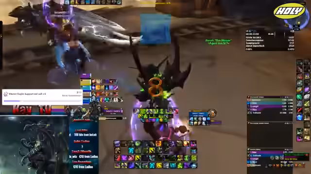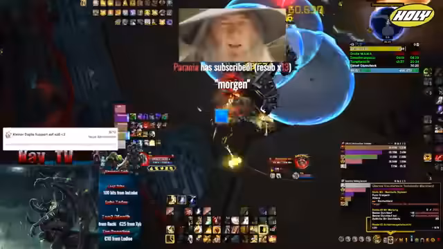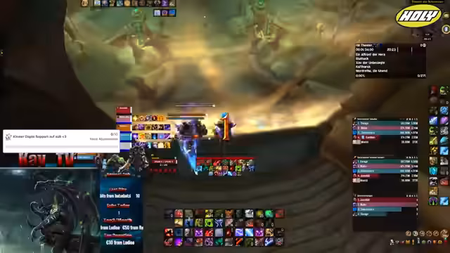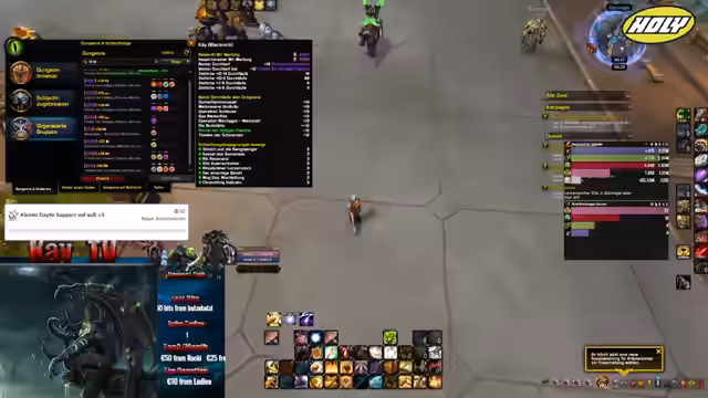 02:57:54Der Stream konzentriert sich auf das Spielen von Mythic Plus Dungeons in World of Warcraft. Ein 13er Key wird mit einem sehr guten Ergebnis abgeschlossen, ohne Sabotage oder Tode, was vom Streamer gelobt wird. Ein 14er Key wird ebenfalls gestartet. Während des Spiels treten jedoch technische Probleme auf, darunter ein Bug bei den Schild-Farben des Paladins und ein unerklärlicher Game-Crash, die den Spielverlauf kurzzeitig unterbrechen.