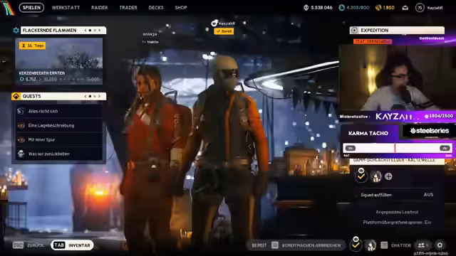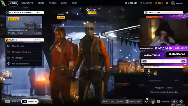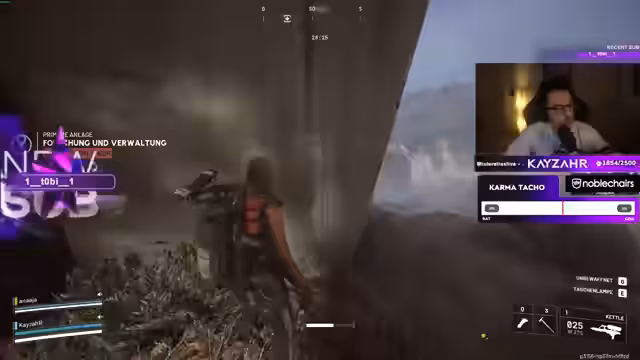 00:38:47KayzahR schließt sich mit anderen Spielern zusammen, darunter Gigastein, und plant gemeinsame Aktionen. Sie diskutieren über Skins, öffnen Räume und tauschen sich über die Loot-Qualität aus. KayzahR zeigt sich misstrauisch gegenüber bestimmten Spielern, die er als 'Ratten' bezeichnet, und analysiert deren Verhalten, um gemeinsam effektiv zu exfiltrieren.