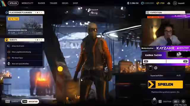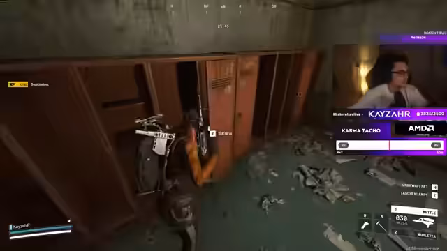 00:02:25KayzahR startet den Stream und begrüßt die Zuschauer. Er lootet einen Raum und findet mehrere Gegenstände, darunter Baupläne und vollgefüllte Taschen. Er bemerkt, dass der Loot bei Nacht besonders ergiebig ist, auch wenn er aktuell nicht aktiv nach neuen Gegenständen sucht. Während der Loot-Phase interagiert er mit dem Chat und zeigt sich über die positiven Rückmeldungen der Community erfreut.