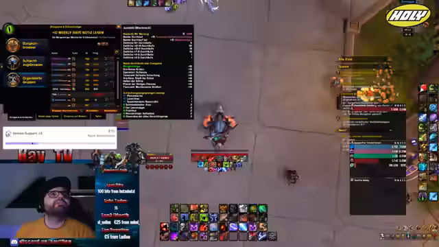 01:24:20Es wird ein Hype Train gestartet und die Zuschauer werden aufgefordert, diesen zu unterstützen. Es wird über Dungeon-Mechaniken gesprochen, insbesondere über das Ausweichen von Pfützen und das Sammeln von Kugeln beim zweiten Boss. Es wird auch über die Verwendung von Bloodlust und anderen Fähigkeiten diskutiert, um den Boss schnell zu besiegen. Der Streamer gibt Anweisungen, wie die Mechaniken richtig gespielt werden müssen, und lobt die Spieler für ihre Leistung. Es wird auch über Fehler gesprochen, die gemacht wurden, und wie diese vermieden werden können. Des Weiteren wird über die Bedeutung von Teamwork und Kommunikation im Dungeon gesprochen. Es wird auch über die Verwendung von bestimmten Fähigkeiten und Talenten diskutiert, um den Dungeon zu meistern. Der Streamer kritisiert Spieler, die Fehler machen und dadurch die Gruppe behindern, lobt aber auch Spieler, die gut spielen und zum Erfolg beitragen.