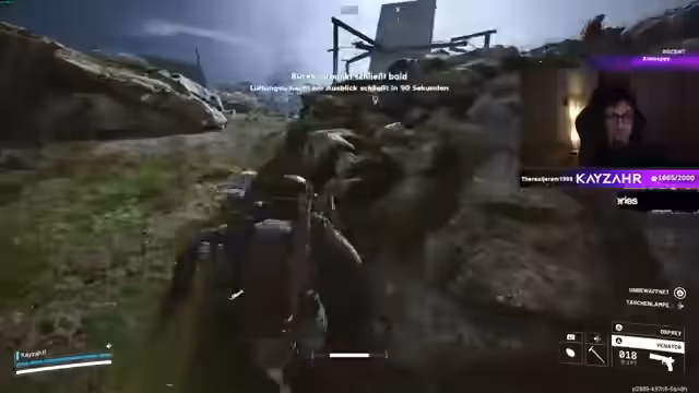 00:41:14Der Streamer hat eine Quest, bei der er die Schubdüsen außerhalb der Raketenmontage im Raumhafen ansehen muss, bekommt den Erfolg aber nicht. Er fragt die Zuschauer, ob sie wissen, wie diese Quest funktioniert. Er erwähnt, dass er einen harten Tag hatte, da er seine Pläne für ein Turnier ändern musste und dort "abgefuckt" wurde. Er entdeckt, dass Granaten sehr effektiv gegen Roboter sind und plant, gezielt nach "verrosteten Zahnrädern" zu suchen. Er lässt andere Spieler die Antennen aktivieren, während er selbst lootet. Er beschwert sich über die Schwierigkeiten beim Sprinten mit dem Controller und findet keine Waffenkisten oder schwere Munition. Er trifft auf einen anderen Spieler und fragt ihn nach der Quest mit den Schubdüsen. Er ist frustriert, dass ein Spieler ihn mit einer "OP-Waffe" (Osprey) zweimal "One-Shot" schießt und ihn abcampt, während er versucht, eine Quest zu erledigen. Er bezeichnet den Camper als "Fotze" und "Opfer". Er vergleicht Arc Raiders mit Tarkov als Extraction-Game und beklagt, dass er kein Schild mehr hat. Er versucht, mit einem anderen Spieler zusammenzuarbeiten, um dem Camper zu entkommen und die Quest zu beenden. Er schlägt vor, Rauchgranaten zu verwenden, um sich zurückzuziehen. Er ist überrascht, dass der Camper immer noch da ist und fragt sich, warum dieser im Bunker-Modus, der auf Kooperation ausgelegt ist, andere Spieler angreift. Er versucht, mit dem Camper zu verhandeln, da er nur ein Freeloadout hat und somit nicht viel Loot zu bieten.