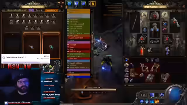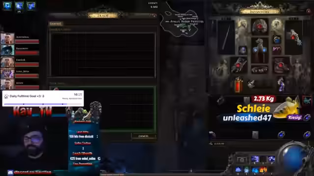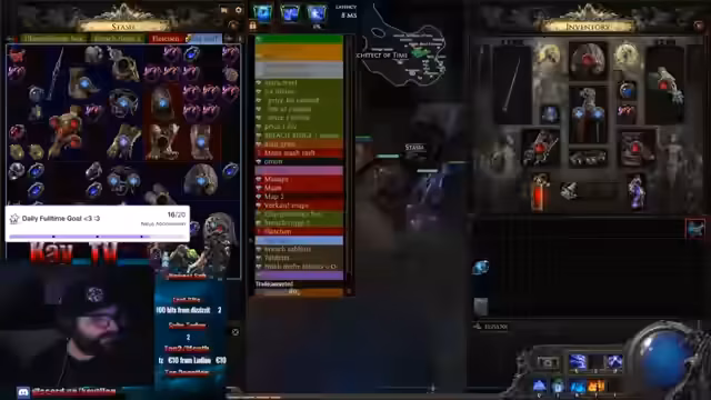 01:15:52Es werden Items begutachtet und über deren Wert diskutiert. Ein Spieler namens Kollege Schnürschuh erhält Glückwünsche zu einem Gewinn. Es wird über das 'Gambling' von Items gesprochen, wobei der Fokus auf dem Erzielen von guten 'Corrupts' liegt. Es wird über Finanzen, Katastrophen und Glücksspiel gesprochen. Der Streamer vergambelt alles für nichts und spielt mit dem Gedanken, das Item zu verkaufen. Katie benötigt bestimmte Juwelen, hat aber keine guten blauen. Es wird überlegt, wer noch bei einer Map mitmachen möchte und auf die Möglichkeit hingewiesen, durch die Eingabe von '!angeln' an einem Gewinnspiel teilzunehmen. Der Streamer bietet an, Chaos für 65 Chaos anzubieten und äußert den Wunsch zu gambeln.