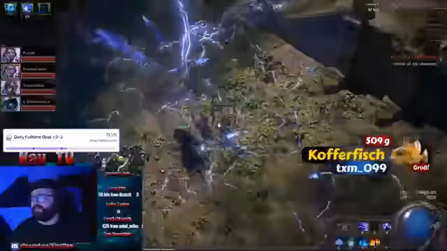 04:24:38Es wird erklärt, dass man im Softcore XP verliert, wenn man stirbt. Ein Zuschauer soll einfach hinterherlaufen und keine Leggy Spells benutzen. Die Streamerin betont, den besten Spark-Damage deutschlandweit zu haben. Es wird erklärt, wie man im Hardcore-Modus durch schnelles Drücken von Escape überleben kann. Ein Zuschauer fragt nach dem aktuellen Level. Es wird erwähnt, dass die meisten Deutschen kein HC spielen. Es wird ein Platz für jemanden angeboten, der mitspielen möchte, aber Level 70 sein muss. Es wird ein Divine Giveaway angekündigt, bei dem man durch Stream folgen und Ausrufezeichen Angelein geben teilnehmen kann. Es wird erklärt, dass man bei Tower Maps nicht zusammenlaufen muss, bei teuren Maps aber schon. Es wird ein weiterer Divine verschenkt. Es wird die hohe Mana-Regeneration der Streamerin hervorgehoben. Ein Zuschauer ist gestorben und soll mitgenommen werden. Es werden Maps an die Zuschauer verschenkt. Es wird vergessen, Quantität auf eine Map zu geben. Es werden Breach Tablets verwendet und eine Blooming Field Map gestartet. Es wird betont, dass man vorsichtig sein soll, damit die Zuschauer nicht sterben. Es wird ein Bikini geangelt. Zuschauer sterben unerwartet.