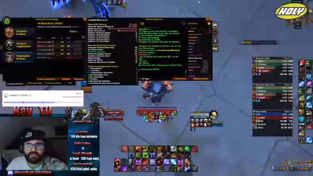 05:31:26Es findet eine Diskussion über die unterschiedlichen Spielstile und Aktivitäten in World of Warcraft statt. Der Streamer vergleicht den Stress und den Aufwand im Mythic-Plus-Spielmodi mit dem Relax-Charakter des normalen Raidens. Er erwähnt die abnehmende Anzahl an Multiquade-Spielern in Deutschland und vermutet, dass WoW immer mehr zu einem Solo-Spiel wird. Des Weiteren wird geplant, an einem Abend einen Nighthold Raid Clear mit der Community durchzuführen.