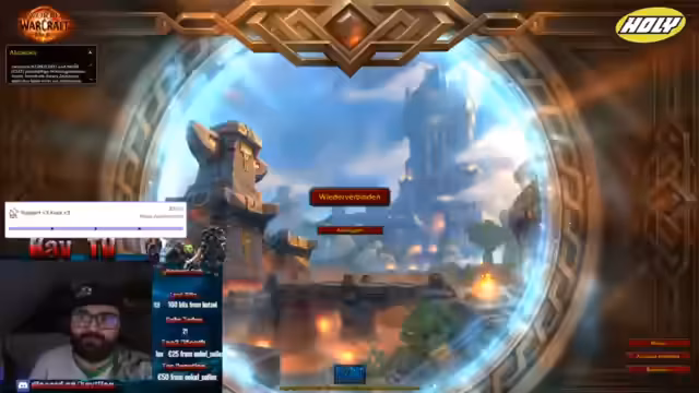 05:04:55Nach der Ankündigung der Events wechselt der Stream zum World of Warcraft-Spiel. Der Streamer startet einen Schlachtzugs-Dungeon und lädt die Community ein, mitzumachen. Der Ton ist locker und freundlich, er begrüßt seine Zuschauer im Spiel und interagiert aktiv mit ihnen. Das Gameplay im Arakara-Dungeon steht im Fokus, wobei die Bereitschaft der Community zur Teilnahme an den geplanten Aktivitäten sehr hoch ist.