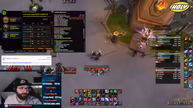 08:38:39Ein signifikanter Teil des Streams befasst sich mit der detaillierten Erklärung und Durchführung von Bosskämpfen in einem spezifischen Dungeon. Der Streamer leitet die Gruppe durch komplexe Mechaniken, wie z. B. 'Apex', 'Dispell' und 'Hochheelen', und korrigiert Fehler in Echtzeit. Die Kommunikation über Discord ist dabei entscheidend, um Koordination zu gewährleisten. Das Ziel ist ein reibungsloser Dungeon-Verlauf, der trotz neuer oder unerfahrener Spieler gelingt.