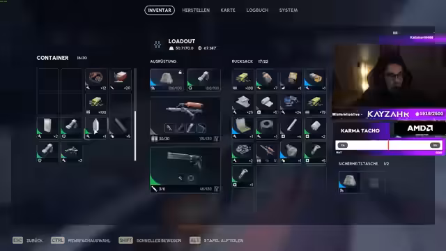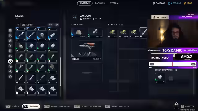 00:27:58Nach erfolgreichem Abschluss einer Quest ist das Lager des Streamers wieder voll, was ihn vor die Herausforderung stellt, welche Gegenstände er verkaufen soll, um Platz zu schaffen. Er überlegt, Waffen mit guten Aufsätzen zu verkaufen oder zu zerlegen, um Platz zu schaffen. Er entscheidet sich schließlich, einige Gegenstände zu verkaufen, um die Lagerkapazität zu optimieren. Anschließend bereitet er sich auf eine neue Rotation im Raumhafen vor, wo er vorhat, andere Spieler zu "abfucken". Er plant, Schockminen zu craften, stellt aber fest, dass ihm die nötigen Materialien fehlen. Er erwähnt auch eine Diskussion über den Anvil-Spalter und andere Taktiken, die er auf TikTok gesehen hat.