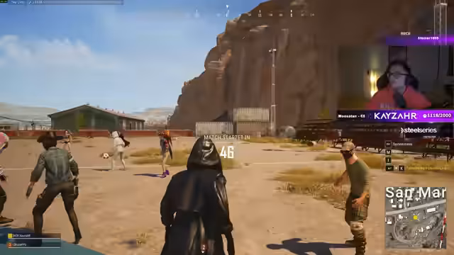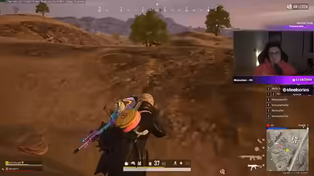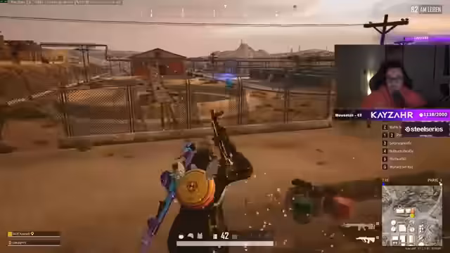 00:43:19Ein Gegner landet vor dem Streamer und hat eine Waffe. Der Gegner hat goldene Panzer, was bedeutet, dass er viele Kills mit der Panzerfaust gemacht hat. Der Streamer stirbt durch einen Headshot mit einer AKM. Der Mitspieler hat einen Taser in der Hand und seine M4 nicht nachgeladen. Es wird gefragt, ob der Mitspieler im Saarbrücken Stadion ist. Der Streamer stirbt erneut und findet es "Bullshit". Er wird von einem Gegner mit komplett pinker/lila Kleidung getötet, der ein goldenes Chicken mit einem blauen Ding hat. Der Gegner hatte keinen Helm und gibt dem Streamer einen Headshot. Der Streamer fühlt sich "gefraudet" und der Kill war "lucky". Er hat 73 Damage gemacht. Es wird beschlossen, wieder First Person zu spielen, da die Gegner dort schlechter sind. Der Mitspieler soll sich einloggen. Es wird gefragt, wie der Mitspieler zum Stadion kommt. Der Streamer ist "talented". Der Mitspieler soll aufpassen, was er sagt, da man heutzutage schnell Ärger bekommen kann. Die Map wird als die Map identifiziert, auf der sie gerade "gewichst" wurden. Es wird beschlossen, eine andere Strategie zu probieren. Der Mitspieler soll etwas vorschlagen. Der Streamer hat eine Vision, in Fontan "aufzuräumen". Es wird überlegt, ein Abendspiel zu besuchen. Fontan soll die "Hood" sein. Der Mitspieler soll rausspringen. Es wird erklärt, wie man länger mit dem Fallschirm fliegt. Der Mitspieler hat es nicht gecheckt, dass es ein Spaß war. Es wird überlegt, ob der Streamer auch zum Spiel geht. Er will seinen "Übermenschfallschirm" noch länger angucken. Es wird gefragt, woher der Fallschirm ist.