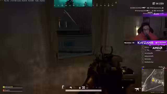 00:30:40Es werden neue Sets im Spiel entdeckt und die teuren Anschaffungen des Streamers erwähnt. Es wird überlegt, ob es etwas "Geiles" gibt, wie ein Waffenset oder Emoteset. Der Sieg von Werder Bremen (3-0 gegen Gladbach) wird erwähnt. Der Mitspieler wird gefragt, ob er ein Fußball-Fan ist und wer für ihn der "Goat" ist. Es wird über ein krankes Outfit im Spiel gestaunt. Die aktuelle Map wird als gewinnbar eingeschätzt und der neue Fallschirm mit "Übermensch" gelobt. Es wird über das neue Album "Übermensch" gesprochen und die Bedeutung des Wortes diskutiert. Es wird überlegt, ob man abdrehen sollte, aber es gibt keinen klaren Plan, wohin. Der Mitspieler landet schnell und hat vermutlich eine Waffe. Der Streamer findet keine Waffe, obwohl er später gelandet ist. Er teilt eine M24 mit dem Mitspieler. Ein Gegner ist im Haus und wird mit einer Bolt-Action-Waffe bedrängt. Der Mitspieler nimmt die M4. Es wird festgestellt, dass im Killfeed direkt ein Peak zu sehen ist. Der Streamer hat keine Weste und wenig Leben. Es wird vermutet, dass noch ein Team im Haus ist und ein anderes von hinten kommt. Die Gegner "kämen halt alle auf uns". Ein Gegner wird genockt und es kommt zum Kampf. Der Streamer stirbt von draußen und bemängelt die Winkel der Gegner. Er fordert, dass sein Leben geholt wird, hat aber nichts zum Heilen. Es wird vermutet, dass die Achis kommen und "einheizen" werden. Der Streamer analysiert, wie er von einem Gegner beschossen wurde und wie dieser sich hinter einer Mauer versteckt hat. Sein Damage Output betrug 172.
