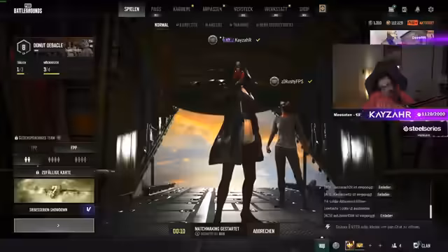 00:03:38Der Stream beginnt mit passender, leicht melancholischer Musik. Es wird die schnelle Lobbyfindung hervorgehoben. Steiner wird für 51 Monate und Chris für 33 Monate Unterstützung gedankt. Es wird erwähnt, dass Chris' Kanal stark wächst, während der eigene stagniert. Es folgt ein kurzer Spaß über das Aussehen im Spiel, inklusive der Aura des Skins und die Fähigkeit, schnell First Person zu spielen. Gestern Offstream lief es sehr gut und es gab mehr Kills als sonst. Trios mit Frosty oder Quads mit Frosty und Rubini werden als potentiell anstrengend eingeschätzt, da Hubini sich selbst für zu gut hält. Der neue Ledermantel im Spiel, der 4000 Punkte kostete, wird als energiegeladen und mit Aura beschrieben. Es wird festgestellt, dass schlechte Spieler oft schlechten Loot haben.