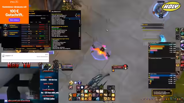 03:46:34Der Stream konzentriert sich auf das Gameplay in World of Warcraft, speziell das Farmen von Ausrüstung. Es geht um das Craften von Items wie einem Schild, um die Vault zu optimieren und einen benötigten Helm mit Scherl zu erhalten. Auch die Raids stehen im Mittelpunkt, wobei der Streamer einen weiteren Key als Tank anvisiert und sich auf den Gambit-Modus vorbereitet. Die Suche nach einem Heiler für einen Raid in Bremen und die Diskussion über einen Paladin als Tank sind Teil des aktuellen Vorhabens.