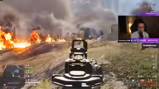 07:34:34Die Spieler haben Schwierigkeiten, ihre Loadouts zu finden, da diese außerhalb der Zone liegen oder unerwartet verschwinden. Ein Spieler beklagt, dass sein Loadout kaputt gemacht wurde und er es nicht erreichen kann. Die Helikopter-Steuerung wird als schwierig empfunden, was die Fortbewegung erschwert. Trotzdem versuchen die Spieler, ihre Mates wiederzubeleben und Gegner auszuschalten. Es gibt intensive Gefechte, bei denen die Spieler von mehreren Seiten angegriffen werden. Die Suche nach Loadouts und die Navigation in der Zone bleiben eine große Herausforderung.