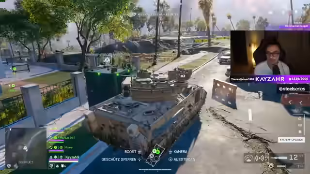 04:12:52Ein Spieler landet etwas abseits, um mehr Waffen zu sammeln, wird aber von einem Panzer beschossen und benötigt Unterstützung. Die Teamkollegen suchen den Panzer, können ihn aber nicht markieren. Ein Spieler verursacht bereits 2000 Schaden in der Runde. Ein Team wird gesichtet, und die Spieler versuchen, es zu bekämpfen. Der Panzer fährt weg, und die Spieler versuchen, ihn zu verfolgen. Ein Teamkollege wird von hinten gesnipet, während ein anderer versucht, den Panzer mit einem Mörser zu beschießen. Die Situation eskaliert, als mehrere Teams und ein weiterer Panzer auftauchen, was zu einem chaotischen Kampf führt, bei dem die Spieler unter schwerem Beschuss stehen und Schwierigkeiten haben, sich zu orientieren.