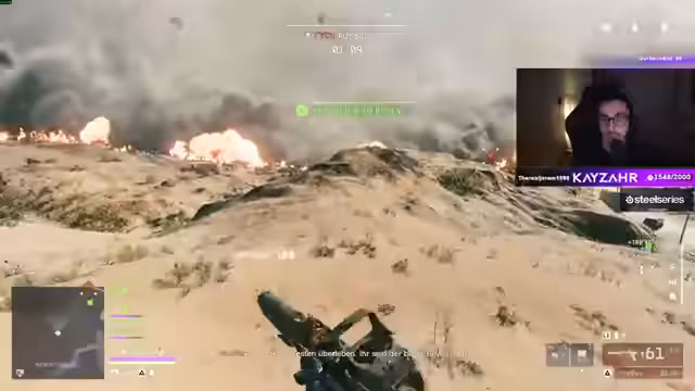 04:41:17Die Spieler befinden sich in einem intensiven Gefecht, bei dem sie von einem ganzen Team in der Mitte des Schlachtfelds festgehalten werden. Ein Spieler bemerkt, dass er keine Panzerplatten mehr hat, was die Situation zusätzlich erschwert. Trotzdem versucht er, mit einem Raketenwerfer Schaden an einem Panzer zu verursachen, weiß aber, dass er nach dem ersten Schuss auf der Karte sichtbar wird. Die Teammitglieder versuchen, sich gegenseitig zu unterstützen, indem sie Informationen über die Positionen der Gegner austauschen und versuchen, den Panzer zu zerstören. Die Kommunikation ist dabei entscheidend, auch wenn es zu Missverständnissen bezüglich der Anzahl der verbleibenden Gegner kommt.