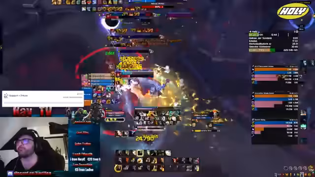 00:27:09Kaytlien versucht, erfolgreich eine Mythic Plus-Gruppe für einen 9er-Schlüssel zu formen, stößt aber auf Herausforderungen. Es werden Probleme mit der Leistungsfähigkeit der Gruppe und unkoordiniertem Gameplay thematisiert. Ein spezifisches Problem tritt auf, als ein Spieler, Kaytlien kritisiert, sich nicht dem Battle-Zug anschließt und den Fortschritt verlangsamt. Dies führt zu Diskussionen über Routenführung, Tank-Spielweise und die Notwendigkeit erfahrener Spieler in höheren Dungeon-Schwierigkeitsgraden.
