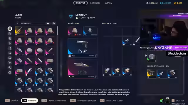 05:47:40Der Streamer unterhält sich mit seinem Chat über verschiedene Themen. Er zeigt sich dankbar für eine Spende eines Viewers, einen 'Prime Sub', und demonstriert die damit gesponserte Ausrüstung. Gleichzeitig werden technische und organisatorische Probleme angesprochen, wie das Finden einer Wohnung oder die Planung gemeinsamer Stream-Aktivitäten mit anderen Streamern wie Fladi und Sergen. Die Stimmung ist dabei eher locker und gesprächig, was einen Kontrast zum vorherigen, actiongeladenen Gameplay darstellt.