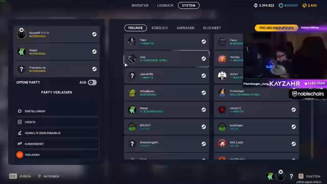 02:20:08Der Streamer demonstriert die verschiedenen Angriffe der Königin, wie den Raketenwurf und den Laserstrahl, und erklärt deren Schadenspotenzial. Er versucht, seinen Mitspieler Max für ein Squad einzuladen, indem er einen Discord-Link postet, damit sie gemeinsam PvE-Lobbys bestreiten können. Da Max die Einladung nicht sofort erhält, erklärt der Streamer, wie man den Discord-Server 'Pöbel' betritt und sich für den Beitritt vorbereitet. Sie planen, in der nächsten Runde gemeinsam die Königin anzugreifen, um den Vibe der Lobby zu testen.