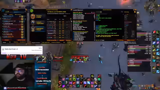 05:39:28Der Stream konzentriert sich intensiv auf das Spielen von Mythic Plus Dungeons, speziell im Bereich der Rio-Wertung 3200-3400. Es gibt zahlreiche technische Herausforderungen und wipes aufgrund von Fehlern in der Gruppe. Besonders wird die Mechanik der 'Headfocus'-Phase angesprochen, die oft zu Problemen führt. Der Streamer erklärt Pull-Strategien und betont die Wichtigkeit von korrektem Bewegen und Koordination innerhalb der Gruppe, um die Komplexität der Dungeontasks zu meistern.