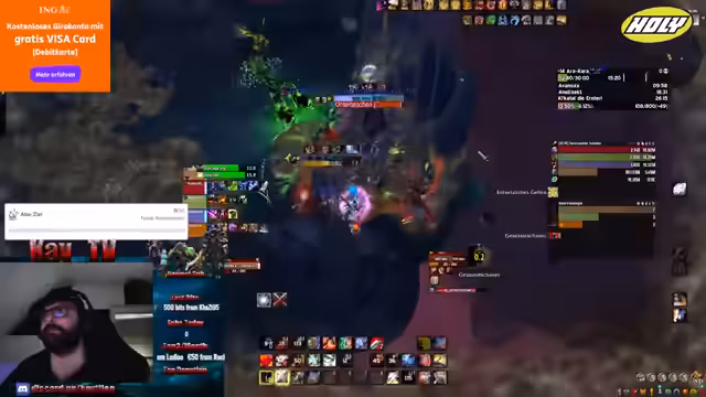 00:07:57Zu Beginn des Streams begrüßt kaytlien die Zuschauer im Chat und erzählt von seinen Erfahrungen aus gestern, als er im Mythic-Raid teilnahm. Dabei erwähnt er frustriert, dass er zwar an Bossten kämpfte, aber sein wichtiges Trinket nie gedroppt ist, was seine Raidperformance limitiert. Er teilt auch mit, dass es bei den Raids zu toxischem Verhalten kam, als andere Spieler Fehler machten, was er als übertrieben ansieht.