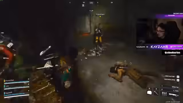 02:39:13Der Stream befindet sich in einer sehr hektischen Kampfphase im Spiel. Der Streamer beschreibt eine komplexe Situation, in der sein Team sich in einem Gebäude befindet und von mehreren Feindseiten angegriffen wird. Es wird von Spawn-Bugs in der Umgebung gesprochen und über die Taktiken wie das Nutzen von Rohren und das Errichten von Barrikaden diskutiert. Ein Ziel ist es, Gegner mit Rauchgranaten zu bekämpfen und den Überblick zu behalten, während man aus verschiedenen Richtungen angegriffen wird. Der Fokus liegt auf der Verteidigung der Position und dem Versuch, in einer zahlenmäßigen Unterlegenheit die Oberhand zu gewinnen.