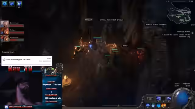 02:18:02Der Streamer bittet die Zuschauer, während der Map nicht aufzustehen oder zu releasen, da dies den Loot und die XP für alle reduziert. Es werden vier Hände gefunden, mit denen der Streamer zufrieden ist. Er will jeden mal mitnehmen und betont, dass er noch eine Hand gefunden hat. Es werden zehn Breaches erreicht, was für viel XP sorgen wird. Der Streamer freut sich über den Erfolg und kündigt einen Musikwechsel an. Er begrüßt einen Zuschauer und erkundigt sich nach dessen Befinden. Es wird über WoW gesprochen und die Möglichkeit, im Stream mitzuspielen. Der Streamer betont, dass er nur gute Maps läuft. Er erklärt, dass man Bridge mit 30 Prozent langsam offen spielen soll, um die maximalen Mobs zu bekommen. Der Streamer erklärt, dass er am Rumtesten ist, was Maximum bringt und er mit vielen Profis am Labern ist. Dadurch ist er jetzt selber Profi geworden, vor allem mit dem Spark. Er gibt an, dass er mit dem Craften ziemlich gut geworden ist und damit viel Currency macht.