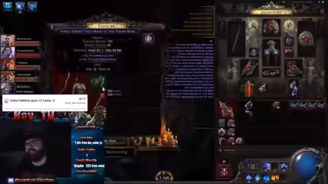 06:12:45Ein Item-Giveaway wird angekündigt, wobei ein bestimmtes Item verschenkt werden soll, wenn jemand Interesse hat. Es folgt eine Diskussion über Item-Preise im Spiel, insbesondere über ein Item, für das ein unrealistisch hoher Preis gefordert wird. Der Streamer äußert sich verärgert über unverschämte Preisvorstellungen und die Unkenntnis mancher Spieler über die tatsächlichen Marktpreise. Es wird die Schwierigkeit bestimmter Maps angesprochen und festgestellt, dass Maps gut laufen, aber Mulacrum problematisch ist. Der Streamer bietet Hilfe bei Similakum an und erklärt sich bereit, Rogue einmal durchzutragen. Es wird über den Wert bestimmter Items diskutiert, wobei der Streamer erklärt, dass einige Items aufgrund ihrer Eigenschaften wertlos sind.