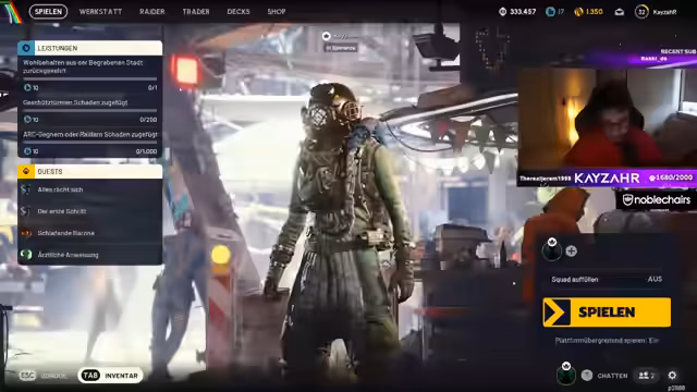 04:03:45Die Anfangsphase des Streams dreht sich hauptsächlich um das Gameplay des Extraction-Shooters Arc Raiders. Der Streamer hat das Ziel, die Willing-Challenge zu absolvieren und muss sein Loadout anpassen, um es kostengünstiger und effektiver zu gestalten. Er kritisiert das Loot-System mit Controller, da es sehr umständlich sei und schlägt eine automatische Quick-Auswahl für Heil-Items vor, um den Spielkomfort zu erhöhen. Während des Spiels versucht er, Loot zu finden und seine Waffe, eine Farrow 4, zu reparieren, was jedoch durch vollen Inventarplatz erschwert wird.