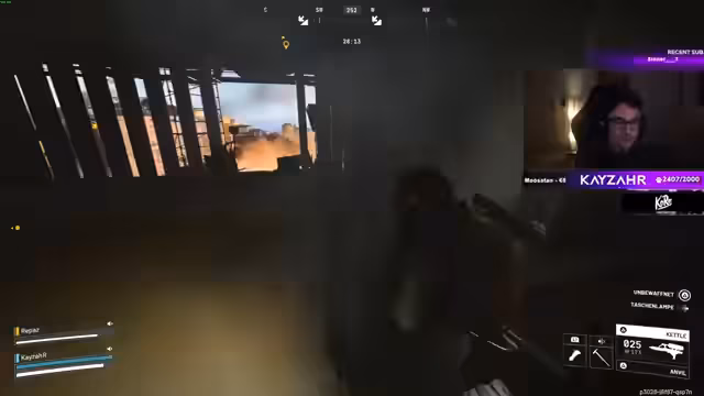 02:09:30Die Kämpfe gehen weiter. Kayzahr und sein Partner werden von einem feindlichen Rocketeer attackiert und eliminiert. Der Streamer beschreibt die Geräusche und die Gefahr, die von solchen Maschinen ausgeht. Es kommt zu taktischen Fehlern, wie dem Campen in ungeschützten Positionen, was zu einem Hinterhalt führt. Sie stoßen auf andere Spieler, welche jedoch neutral oder freundlich gesinnt sind und den Weg freigeben.