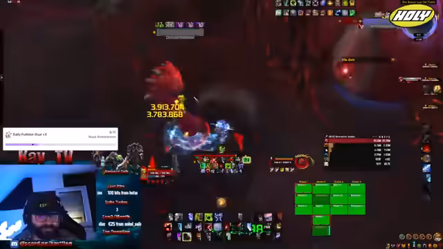 03:06:17Der letzte Raid, die „Prüfung der Tapferkeit“, wurde in Angriff genommen. Es wurde erwähnt, dass für das Transmog-Set ein 30er-Key und für den Titel ein 40er-Key erforderlich sei. Ein 40er-Run für die Community wurde in Aussicht gestellt. Während des Raids kam es zu Problemen mit Spielern, die den Raid vorzeitig verließen oder nicht auf die Gruppe warteten, was der Streamer als „Arschlochverhalten“ kritisierte. Nach dem erfolgreichen Abschluss des Raids wurde noch einmal auf das 90€ Epic Edition Midnight Giveaway hingewiesen und dazu aufgerufen, den Stream via Twitch Prime kostenlos zu unterstützen. Der Streamer verabschiedete sich und kündigte an, später wieder online zu kommen, um Retail-Weeklys zu erledigen. Er bat die Zuschauer, ihm auf TikTok zu folgen, wo er ausschließlich WoW-Content wie News und Guides teilt.