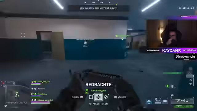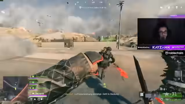 05:54:16Während einer laufenden Runde wird koordiniertes Vorgehen besprochen. Es geht um Positionswechsel im Helikopter, Munitionsmanagement und das Wechseln von Sitzen, um Gegner zu flanken. Die Kommunikation ist dynamisch: "Sitzplatz wechseln!" und "Flieg zurück!" zeigen enge Zusammenarbeit. Probleme mit Gegnern im Parkhaus werden analysiert, während gleichzeitig über Damagemeldungen und Drohnen-Einsatz diskutiert wird.