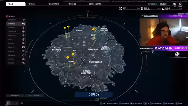 00:19:04Die erste Mission führt durch das Base-Management-System. Kayzahr erklärt den Aufbau der Waffenbank und des Stash-Bereichs. Es folgt die Loadout-Auswahl: Ein kostenpflichtiges Rent-Loadout (2.000 Einheiten) wird gewählt, da eigene Ausrüstung fehlt. Healing-Items und Munition werden manuell hinzugefügt. Das Faction-Missionsystem wird vorgestellt, wobei der Fokus auf der 'Beko'-Fraktion liegt.