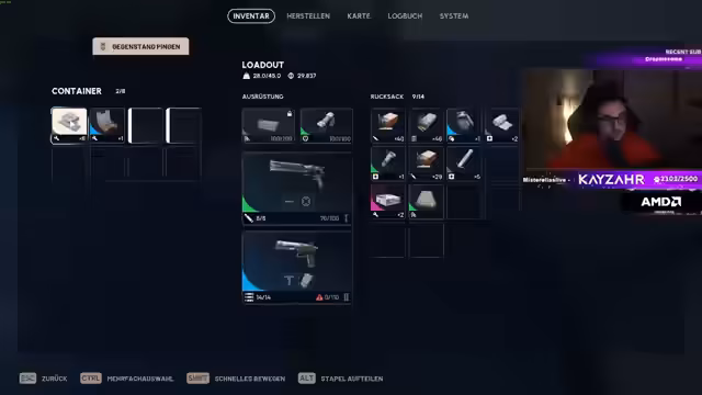03:00:32Während einer Mission zum Liefern von Personal Papers beschreibt der Streamer das Loot-System. Er sammelt Keys, Helme, Westen und Munition, bemerkt aber Platzmangel im Rucksack. Crafting-Stationen und Waffen-Benches werden genutzt, um Ausrüstung zu verbessern. Die Interaktion mit dem Chat zeigt Fraktionen, die unterschiedliche Preise für Items zahlen, was Reputation beeinflusst. Der Streamer kauft eine MPX, diskutiert aber die hohen Kosten und begrenzte Munition.