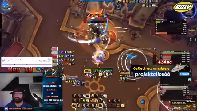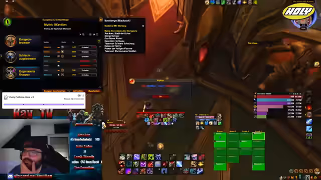 03:50:43Der Streamer startet mit seiner Community einen Raid in der Remix-Version von World of Warcraft. Bei einem Bosskampf kommt es zu technischen Problemen, wie einer unerklärlichen Verbindungstrennung, die den Streamer zwingt, neu zu verbinden. Trotz dieser Unterbrechung wird der Spielplan fortgesetzt, um die Inhalte mit der Community abzuarbeiten, und der Streamer fordert die Zuschauer auf, sich für die nächste Aktivität anzumelden.